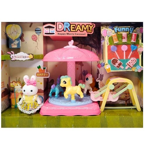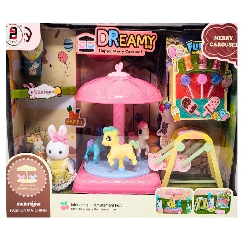 Este conjunto ofrece una experiencia de juego envolvente con la encantadora temática de conejos en un mágico entorno de calesita. Perfecto para niños a partir de 3 años, este set promueve el juego simbólico y la interacción social entre amigos y familiares. Los adorables conejos de la línea Dreamy son el centro de atención de esta colección, junto a una colorida calesita que transportará a los niños a un mundo de fantasía. Al jugar, no solo despertarán su creatividad, sino que también desarrollarán habilidades motoras y de coordinación. Con elementos que fomentan el juego activo, este set resulta ideal para momentos compartidos llenos de risas y diversión.