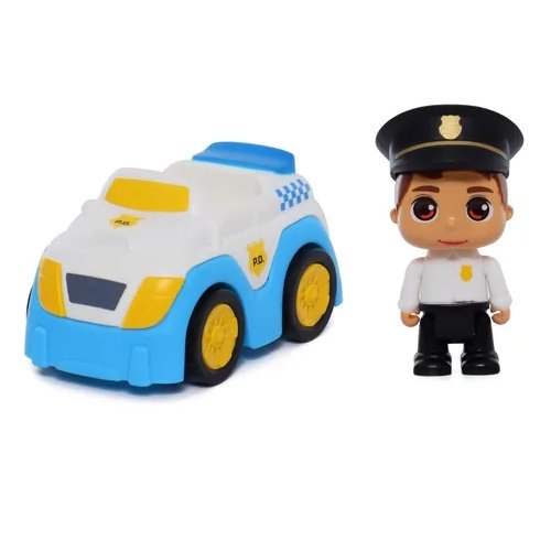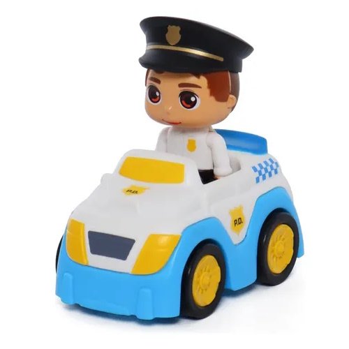 Auto de policia de juguete mas figura, cuentan con colores llamativos para captar la atención del niño.