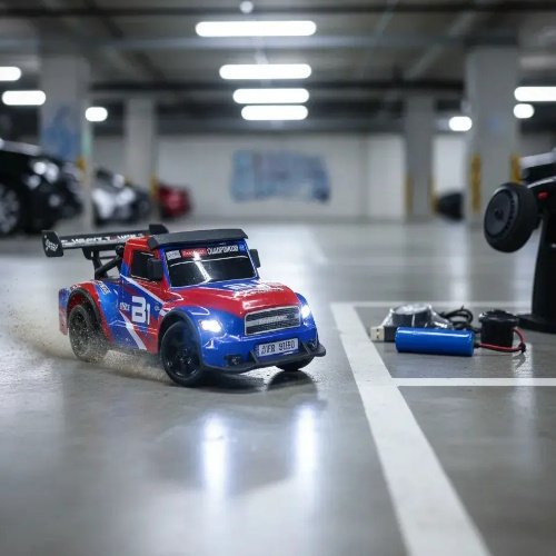 Diseñado para brindar horas de diversión a los amantes de la velocidad y la adrenalina. Con una escala de 1:18, este vehículo es perfecto para maniobras de drift, permitiendo a los jóvenes conductores experimentar la emoción de las carreras en miniatura. Carcasa iluminada control profesional con rueda recargable con ruedas intercambiables para hacerlo modo DRIFT Equipado con luces brillantes y ruedas intercambiables, este auto no solo es visualmente atractivo, sino que también ofrece la posibilidad de personalizar la experiencia de conducción. Su velocidad máxima de 10 km/h garantiza una experiencia emocionante, mientras que su alimentación por USB facilita la carga y el uso continuo. Recomendado para niños de 4 a 12 años, este auto a control remoto es ideal para desarrollar habilidades motoras y coordinación.