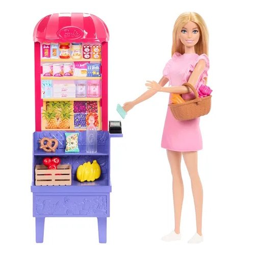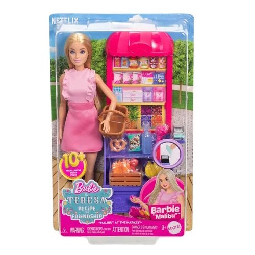 Este set de Barbie Malibú en el Supermercado de Mattel incluye una muñeca Barbie con atuendo casual y un completo mini mercado con accesorios detallados, perfecto para horas de juego imaginativo.