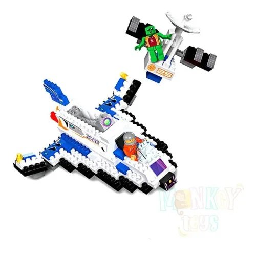 Contiene 148 piezas para armar un transbordador y un satélite, para jugar y divertirse junto al astronauta y el marciano.