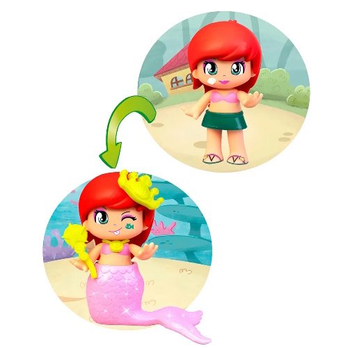 Personalizar a tu sirenita: La figura de Pinypon viene con una cola de sirena desmontable adornada con purpurina, que puedes quitar y poner según prefieras, añadiendo un toque brillante a tus juegos.