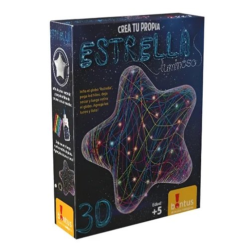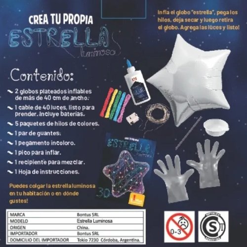 Infla el globo “estrella”, pega los hilos, deja secar y ,luego retira el globo. Agrega las luces y listo!