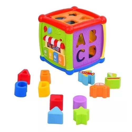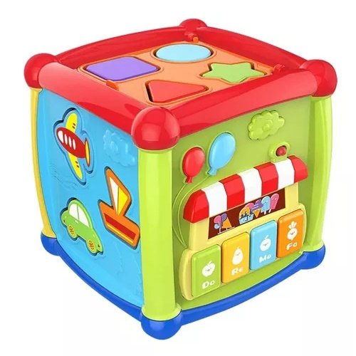 El Cubo Didáctico Actividades Luz Sonido Encastre Fancy Cube, multicolor, es ideal para niños a partir de 18 meses, estimulando su aprendizaje a través del juego.