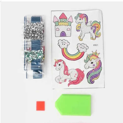 ¡Creá tu propia obra de arte brillante! Este kit de Diamond Painting de Unicornio es perfecto para los amantes de las manualidades y el brillo. Usando un lápiz aplicador, deberás colocar pequeñas gemas de “diamante” sobre el lienzo adhesivo para crear una imagen espectacular de un unicornio. Es una actividad relajante que desarrolla la concentración y la motricidad fina. ¡Al finalizar, tendrás un cuadro espectacular para decorar tu habitación!