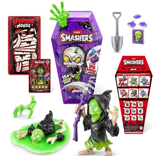 ¡Atrévete a entrar en la escalofriante Horror House de Zuru Smashers! Preparáte para una experiencia única y terrorífica llena de acción, misterio y monstruos. Aplastá, excavá y disecá para revelar más de 10 sorpresas ocultas dentro de un ataúd lleno de slime, arena y espanto. Con cada caja podrás desenterrar partes monstruosas, armar tu criatura articulada y activar sus mecanismos para la batalla. Este set es ideal para quienes disfrutan de coleccionar, armar y crear sus propias historias espeluznantes. ¡Hay 3 monstruos diferentes para coleccionar! ¿Serás lo suficientemente valiente para encontrarlos todos? Detalle del producto: • Más de 10 sorpresas en cada Horror House • Materiales: Plástico (PVC), slime, arena • Edad recomendada: A partir de 5 años • Ideal para: Jugar, coleccionar, explorar y fomentar la imaginación Incluye: • 1 Ataúd de aplastar • 1 Monstruo articulado para armar • 1 Hueso de mano • 1 Pala • 1 Cubierta de tumba aplastable • 1 Carga de arena • 1 Paquete de slime • 1 Figura de momia • 3 Monstruos pequeños • 2 Accesorios sorpresa • 1 Tarjeta de coleccionista • 1 Hoja de instrucciones • 1 Guía del coleccionista