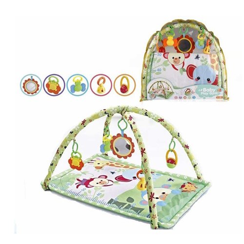 Playgro Junyju Fold & Go Playgym es perfecto para familias que siempre están en movimiento. Cada gimnasio viene con tres juguetes de dentición con textura para calmar las encías doloridas- un vibrante juguete giratorio para fomentar la percepción visual y una pelota de rollo poli para desarrollar las habilidades motrices finas. Estos cinco juguetes divertidos se pueden separar y mover alrededor del gimnasio para que se adapten a su bebé- y todo el bastidor del gimnasio se puede plegar para facilitar el almacenamiento y la portabilidad. Una excelente manera de mantener a su hijo feliz y activo donde quiera que esté- ¡este playgym es un verdadero favorito para los padres!