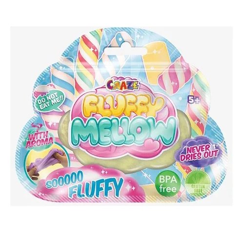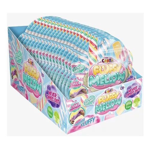 FLUFFY MELLOW se puede moldear, prensar y estirar. Pero FLUFFY MELLOW no es sólo para jugar, también puede usarse perfectamente para aliviar el estrés. FLUFFY MELLOW no contiene BPA ni gluten y está disponible en 4 colores diferentes con aroma en una bolsa de aluminio con cierre. Cada exhibidor contiene 18 bolsas de aluminio de diferentes colores.