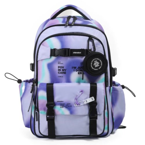 Esta mochila tiene estilo propio por sus colores en efecto blureado. Su pouch colgante desmontable no solo es práctico para guardar lo que quieras sino que también le da un toque único. Incluye pins decorativos que podés mover y combinar para personalizar tu mochila como más te guste. Con tres compartimientos amplios y un bolsillo frontal, vas a tener espacio de sobra para organizar cuadernos, carpetas y accesorios.
