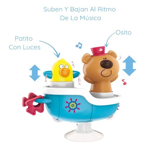 Juego Para Baño Barco Luz Y Sonidos Con Sopapa Explorer Fan Este encantador barco interactivo cuenta con luces y sonidos que estimulan los sentidos de tu bebé, convirtiendo la rutina diaria en un juego lleno de descubrimientos. PODES CONTROLAR LOS SONIDOS CON PALMADAS Incluye un adorable patito con luces y un simpático osito, que suben y bajan al ritmo de la música, enseñando el movimiento y fortaleciendo la coordinación mano-ojo, tu bebé puede controlar los sonidos con pequeños toques sobre los animalitos. Los dos accesorios laterales incentivan a agarrar y ejercitar los dedos, desarrollando la motricidad fina de los más pequeños. Funciona con 3 baterías AAA ( no incluidas).