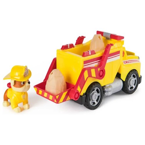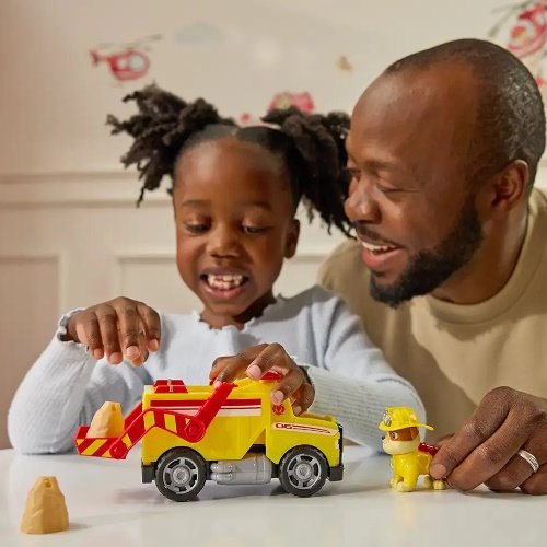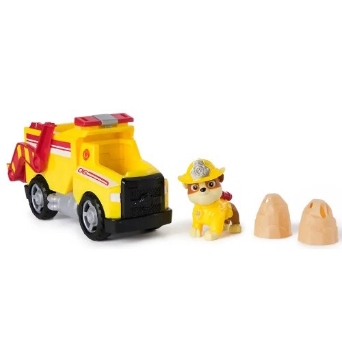 El vehículo permite bloquear los pies de Rubble en la cabina, de modo que quede listo para iniciar cualquier misión. El volquete puede usarse para simular transporte de materiales, agua u objetos de rescate, recreando escenas intensas de acción inspiradas en la serie Paw Patrol.