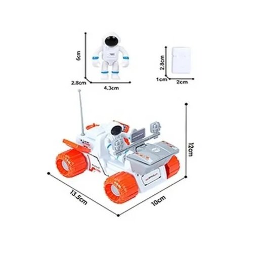 Diseñado con una característica única y sorprendente, el juego del espacio exterior también incluye un astronauta y una cajita en el auto cuyo objetivo es permitirle explorar el espacio. También incluye 1 cuatri espacial con luz y sonido, donde puede viajar el astronauta Cohete: Incluye pilas Medidas del astronauta: 6 x 4,5 cm./ Es articulado en cabeza, brazos y piernas