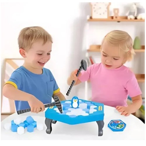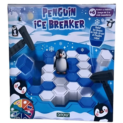 Con el Penguin ice breaker vas a crear divertidos recuerdos y pasar momentos inolvidables junto a tus amigos y amigas. Con este pasatiempo entretenido las risas están aseguradas. Juego para 2 o mas jugadores Como jugar: 1. Cada jugador tomara un martillo, el cual puede ser utilizado de ambos extremos. 2. Comienza el jugador mas joven, haciendo girar la ruleta. 3. El jugador seguirá la consigna de la ruleta, quitando la cantidad de bloques que se indique o perdiendo su turno. 4. Una vez que el jugador toca el bloque con el martillo, no puede escoger otro. 5.Cuando termine de retirar el bloque sin tirar al pingüino, será el turno del siguiente jugador. El jugador que hace caer al pingüino, pierde el juego!
