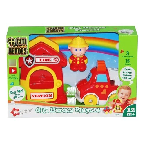 INCLUYE : PEQUEÑA ESTACION DE BOMBERO , FIGURA DE BOMBERO Y CAMIONCITO BOMBERO CON LUZ Y DIFERENTES SONIDOS
