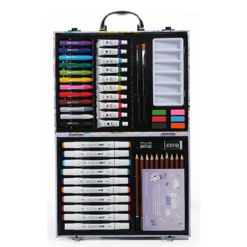 El arte se vuelve una aventura mágica con el nuevo Set de Arte Chimola, una propuesta colorida y funcional pensada para estimular la creatividad desde el primer trazo. Presentado en un estuche tipo valija con diseño full color e ilustraciones, este set se convierte en el compañero ideal para dibujar, pintar o hacer manualidades en casa o en la escuela. Su estructura rígida con manija y cierres metálicos de seguridad garantiza resistencia y practicidad, mientras que su interior refleja el inconfundible estilo Chimola, incluyendo una postal ilustrada de regalo. Cada elemento está cuidadosamente seleccionado para ofrecer una experiencia artística completa en una presentación que invita a crear. Incluye 51 piezas: Marcadores, Lápices de colores, Crayones, Pinceles, Paleta de colores, Goma de borrar, Sacapuntas, Acuarelas, Adhesivos y más. Tamaño: 30x23cm.