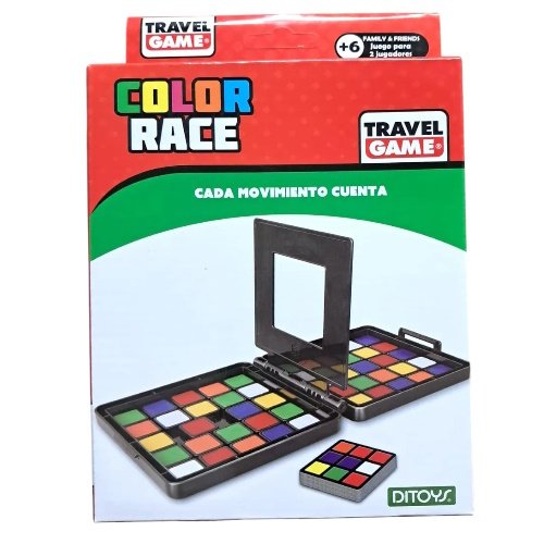 ¡Cada movimiento cuenta! Se el primer jugador en reorganizar las fichas de colores en su tablero coincidiendo con el patrón de la carta. Ahora en su versión pequeña travel para poder llevarlo a todos lados contigo. CONTENIDO: – 1 Tablero de juego plegable con marco divisor. – 25 Cartas con diferentes patrones de colores. – 48 Fichas plásticas de colores. – 48 Fichas plásticas de base. – Instrucciones. CARACTERÍSTICAS: – Medidas tablero abierto: 23 cm de largo x 11 cm de ancho x 12 cm de alto aprox. – Medidas fichas: 2 cm x 2 cm aprox. – Medidas empaque: 24 cm x 15 cm aprox. –