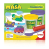 Divertido juego de masa con 2 potes de masa con brillos, 15 moldes de mountruos, 1 espátula, lápices de cera y 4 tableros para pintar.
